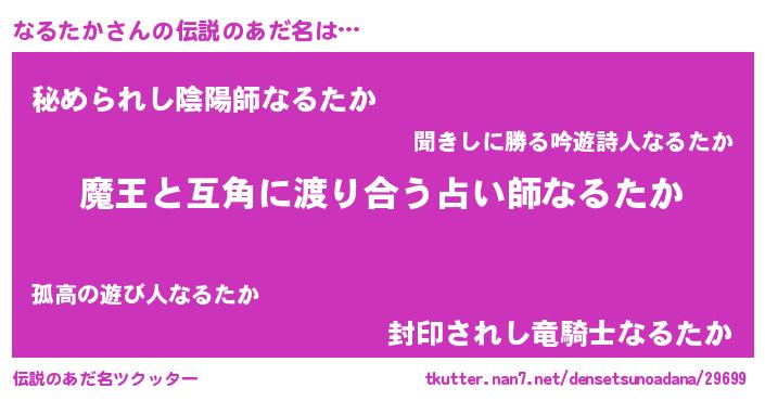 | ヒーロー風カッコイイあだ名 | 『愛の使者なるたか』『仮面ナルダー』 |