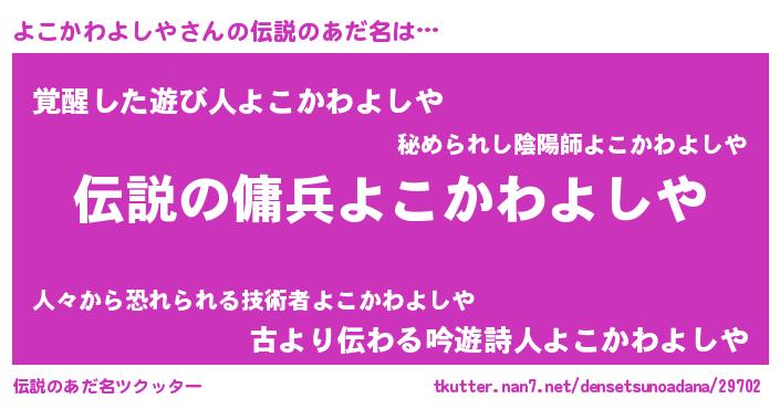| 意味不明あだ名 | 『住所不定無職よこかわよしや(68歳)』 |