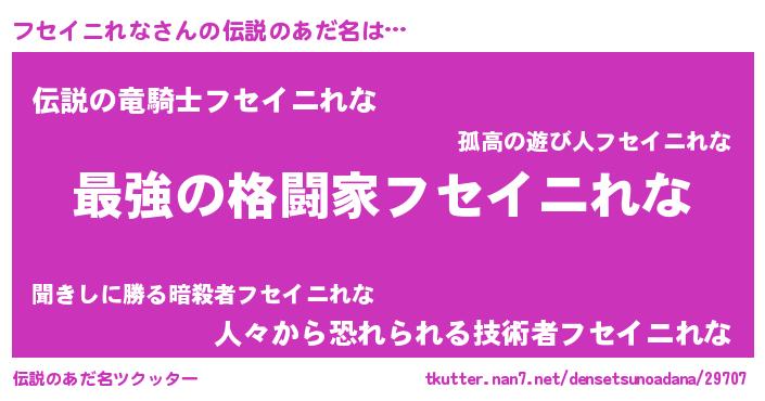 | ヒーロー風カッコイイあだ名 | 『ウルトラフセイニれなマン』 |