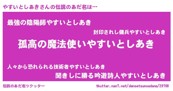 | ヒーロー風カッコイイあだ名 | 『暗黒騎士ヤス』『ネオヤスイトシアキ』 |