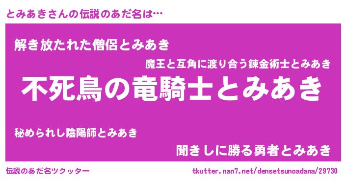 | 男性向けラノベタイトル風あだ名 | 『とみあきに滅ぼされるだけの簡単なお仕事です』 |