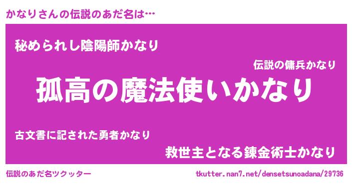 | ヒーロー風カッコイイあだ名 | 『暗黒騎士カナ』『ウルトラかなりマン』 |