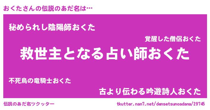 | 女子向けラノベタイトル風あだ名 | 『おくたストレイドッグス』 |