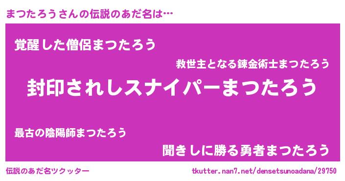 | 胡散臭い通販商品みたいなあだ名 | 『億万長者になれる霊験あらたかなお札…その名も「まつたろう」』 |