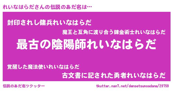 | 意味不明あだ名 | 『れいなはらだフォーエバー』 |