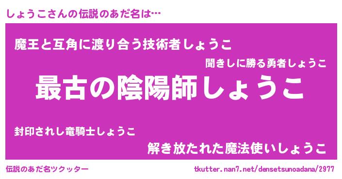 | ファンタジー風あだ名 | 『エターナルショウコー』『ゼショトゥ』 |