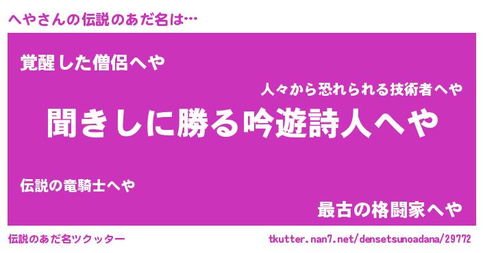 | ヘコむあだ名 | 『へや(小並感)』『へや太郎』 |