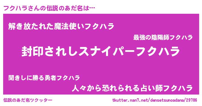 | ヒーロー風カッコイイあだ名 | 『スーパーフクハラ』『最強戦士フクハラ』 |
