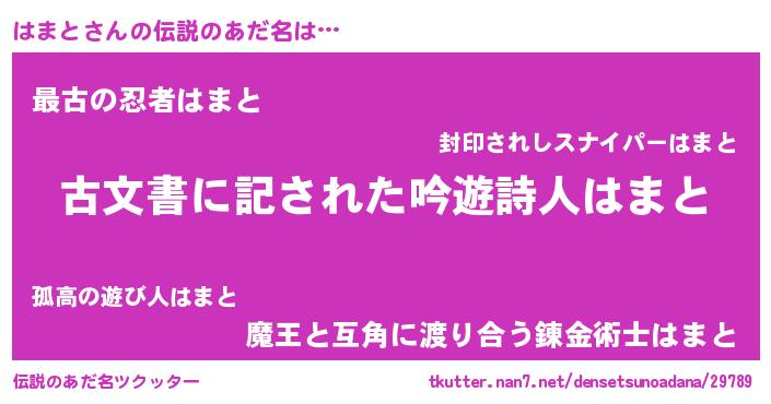 | 男性向けラノベタイトル風あだ名 | 『はまとに滅ぼされるだけの簡単なお仕事です』 |
