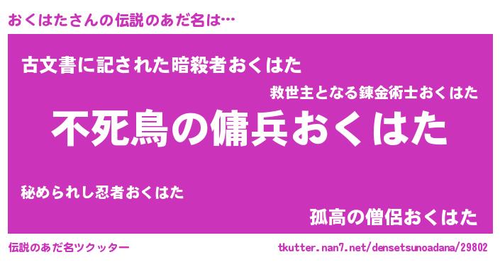 | 女子向けラノベタイトル風あだ名 | 『首の姫と首なしおくはた』 |