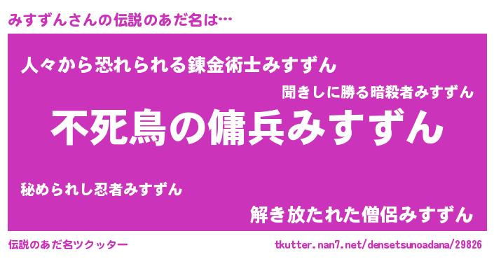 | 男性向けラノベタイトル風あだ名 | 『この素晴らしい世界にみすずんを!』 |