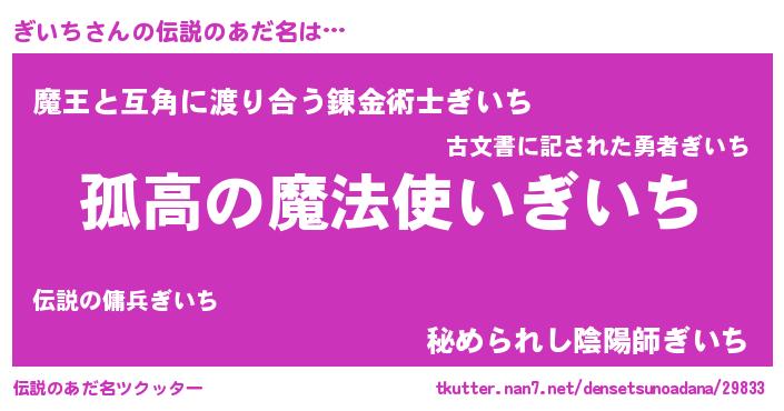 | 女子向けラノベタイトル風あだ名 | 『ぎいちは平凡を望む』 |