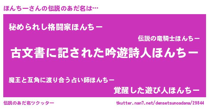 | ヒーロー風カッコイイあだ名 | 『ネオホンチー』『ウルトラほんちーマン』 |