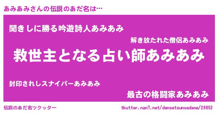 | ヒーロー風カッコイイあだ名 | 『天空の使者あみあみ』『仮面アミダー』 |