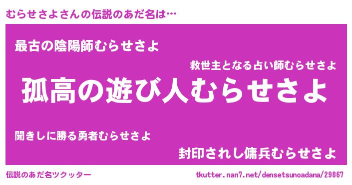 | ポケモン風あだ名 | 『ムラキング』『ヒムラセサヨ』 |