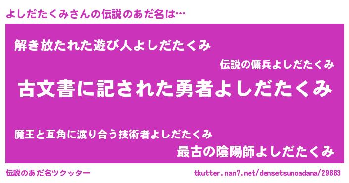 | 意味不明あだ名 | 『永久保存よしだたくみ』 |