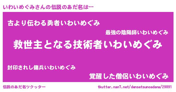 | ファンタジー風あだ名 | 『クインイット』『イワディッシュ』 |