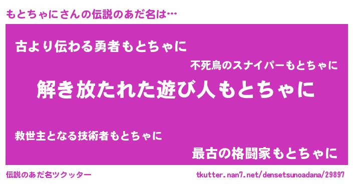 | 意味不明あだ名 | 『とにかく怪しいもとちゃに』 |