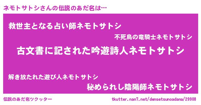 | ヒーロー風カッコイイあだ名 | 『ネオネモトサトシ』 |