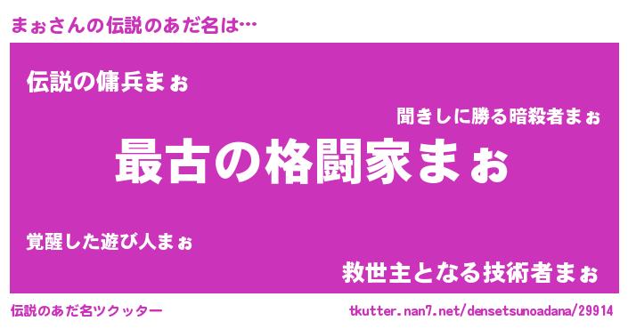 | 男性向けラノベタイトル風あだ名 | 『転生したらまぉだった件』 |