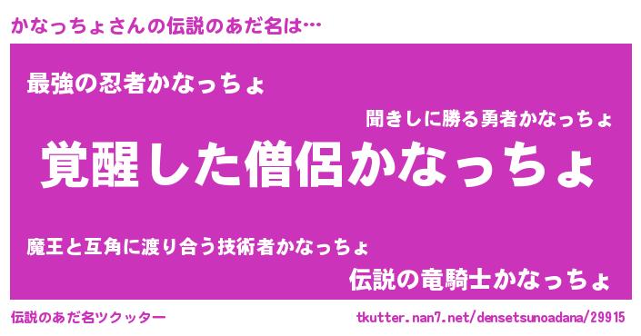 | 男性向けラノベタイトル風あだ名 | 『この素晴らしい世界にかなっちょを!』 |