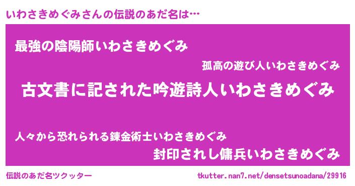 | ヘコむあだ名 | 『いわさきめぐみ(小並感)』『酢こんぶ』 |