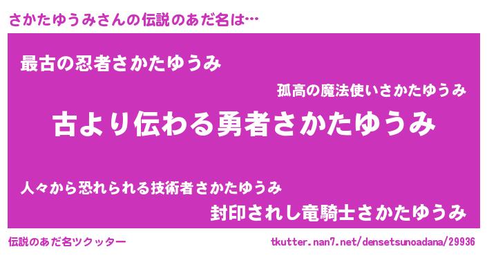 | ヘコむあだ名 | 『さかたゆうみ(震え声)』『なまこ酢』 |