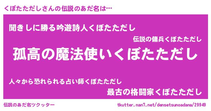 | 男性向けラノベタイトル風あだ名 | 『クボタタダシスレイヤー』 |