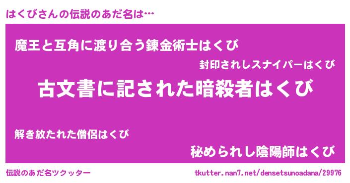 | ヒーロー風カッコイイあだ名 | 『ネオハクビ』『超時空戦士ハクビ』 |