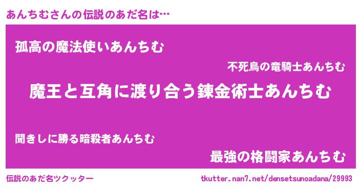 | ヒーロー風カッコイイあだ名 | 『ウルトラ戦士アンチム』『天弓騎士アン』 |
