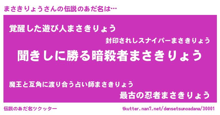 | 意味不明あだ名 | 『住所不定無職まさきりょう(68歳)』 |