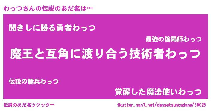 | 男性向けラノベタイトル風あだ名 | 『転生したらわっつだった件』 |