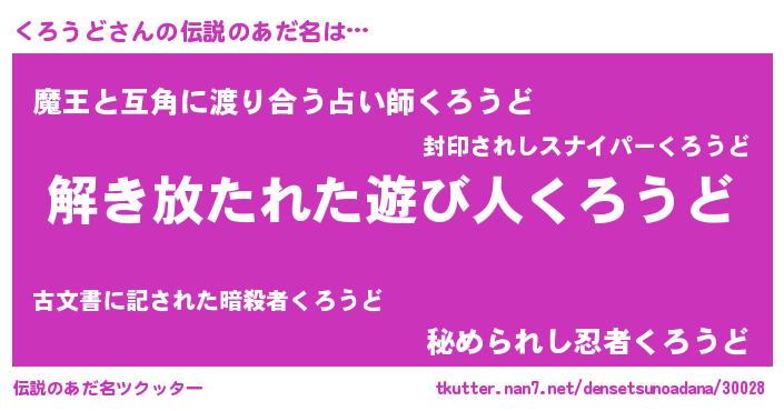 | 意味不明あだ名 | 『自称くろうど』『くろうどフォーエバー』 |