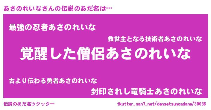| 意味不明あだ名 | 『自称あさのれいな』 |