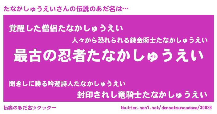 | ファンタジー風あだ名 | 『エターナルタナカシュウエイー』 |