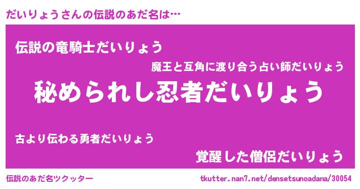 | ヒーロー風カッコイイあだ名 | 『ウルトラだいりょうマン』 |