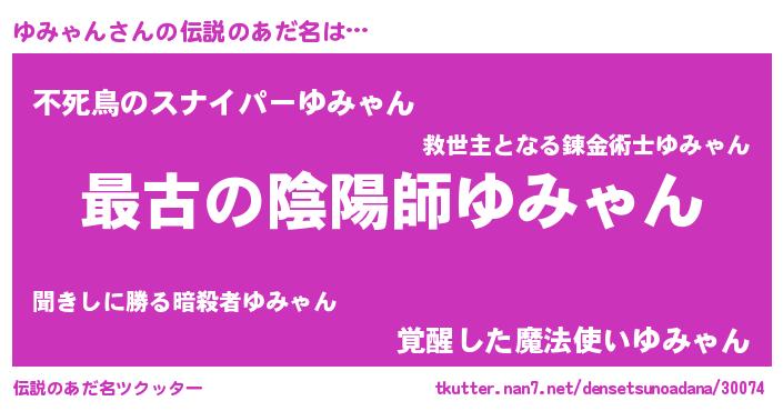 | ヒーロー風カッコイイあだ名 | 『仮面ユミダー』『ウルトラゆみゃんマン』 |