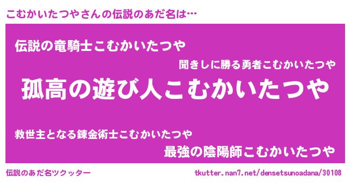 | 胡散臭い通販商品みたいなあだ名 | 『信頼と実績のペンダント…その名も「こむかいたつや」』 |
