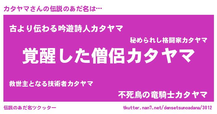 | ヒーロー風カッコイイあだ名 | 『天弓騎士カタ』『仮面カタダー』 |
