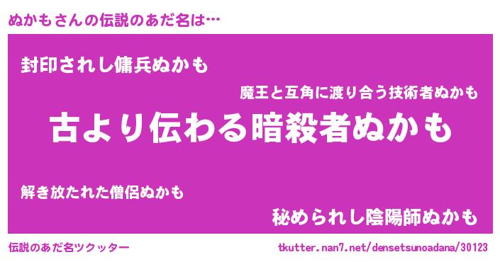 | 胡散臭い通販商品みたいなあだ名 | 『来世でも幸せになれる健康食品…その名も「ぬかも」』 |