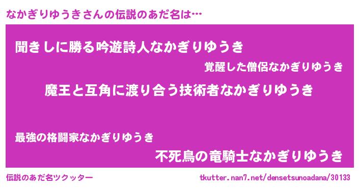 | 意味不明あだ名 | 『自称なかぎりゆうき』 |