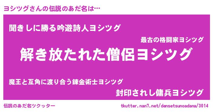 | ヒーロー風カッコイイあだ名 | 『幻影騎士ヨシ』『ネオヨシツグ』 |