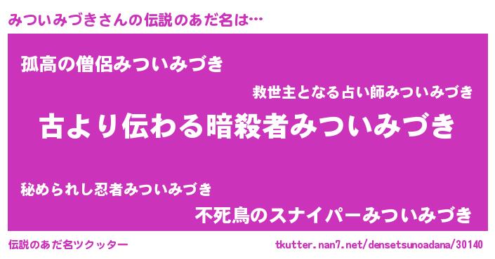 | ヒーロー風カッコイイあだ名 | 『ネオミツイミヅキ』『黄金騎士ミツ』 |