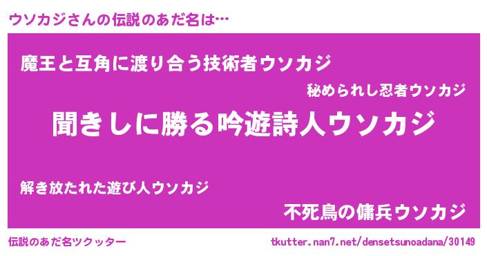 | ヒーロー風カッコイイあだ名 | 『ネオウソカジ』『愛の使者ウソカジ』 |