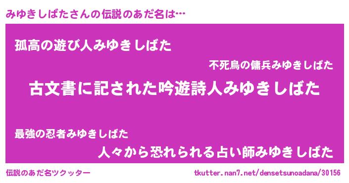 | ヒーロー風カッコイイあだ名 | 『ネオミユキシバタ』『黄金騎士ミユ』 |