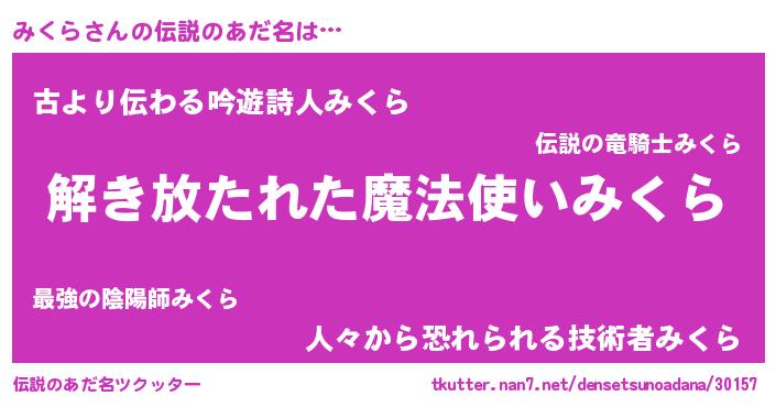 | 男性向けラノベタイトル風あだ名 | 『みくらの嫁は女の子じゃないと思った?』 |
