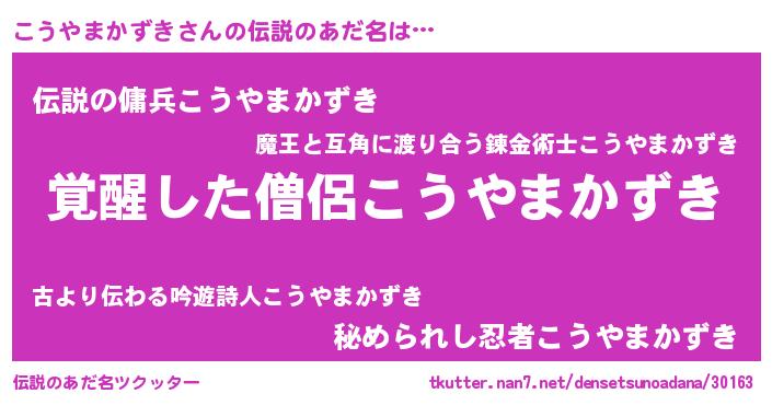 | 男性向けラノベタイトル風あだ名 | 『この素晴らしい世界にこうやまかずきを!』 |