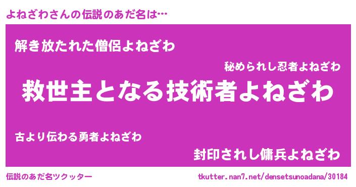 | 男性向けラノベタイトル風あだ名 | 『よねざわ~年齢イコール彼女いない歴の魔法使い~』 |