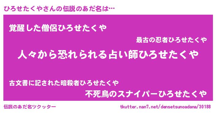 | 胡散臭い通販商品みたいなあだ名 | 『100人中100人が認めたイリジウム磁石…その名も「ひろせたくや」』 |