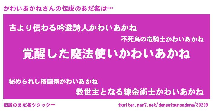 | ヘコむあだ名 | 『かわお』『かわいあかね(小並感)』 |